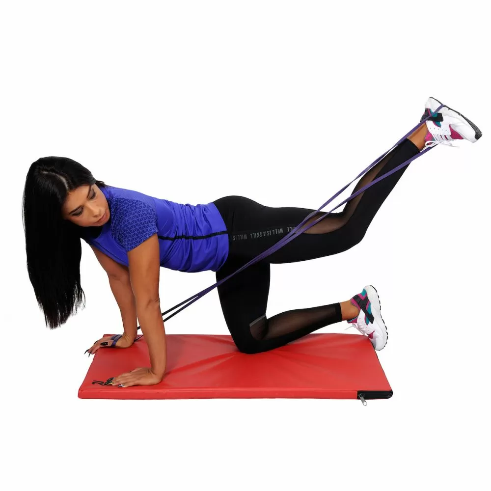 -gumu zakacite na sipku ili benc klupu za dodatno opterecenje tokom podizanja tereta, vezbajte sa njom sasmostalno, ili uz neki drugi rekvizit